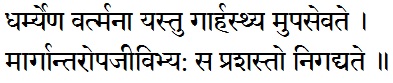 த⁴ர்ம்யேண வர்த்மனா யஸ்து கா³ர்ஹஸ்த்²ய முபஸேவதே |