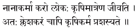 நானாகர்மா கரோ லோக: க்ருஷிமாத்ரேண ஜீவதி |