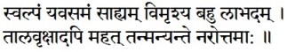 ஸ்வல்பம் யவஸமம் ஸாஹ்யம் விம்ருஸ்²ய ப³ஹு லாப⁴த³ம்