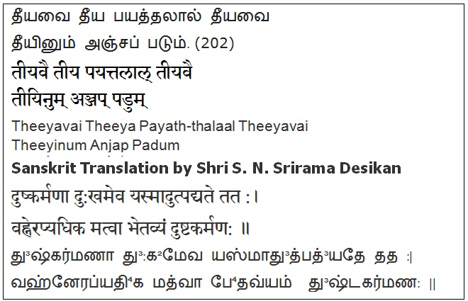 Thiruvalluvar has dedicated an entire chapter 21 to “Fear of Bad Deeds”.