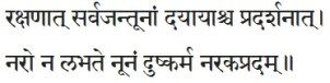 ரக்ஷணாத் ஸர்வஜந்தூனாம் த³யாயாஶ்ச ப்ரத³ர்ஶனாத்