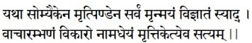 யதா² ஸோம்யைகேன ம்ருத்பிண்டே³ன ஸர்வம் ம்ருன்மயம் விஜ்ஞாதம் ஸ்யாத்³ .