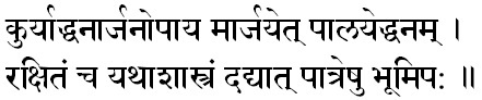 குர்யாத்³ த⁴னார்ஜனோபாய மார்ஜயேத் பாலயேத்³ த⁴னம் |