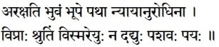 அரக்ஷதி பு⁴வம் பூ⁴பே பதா² ந்யாயானுரோதி⁴னா |